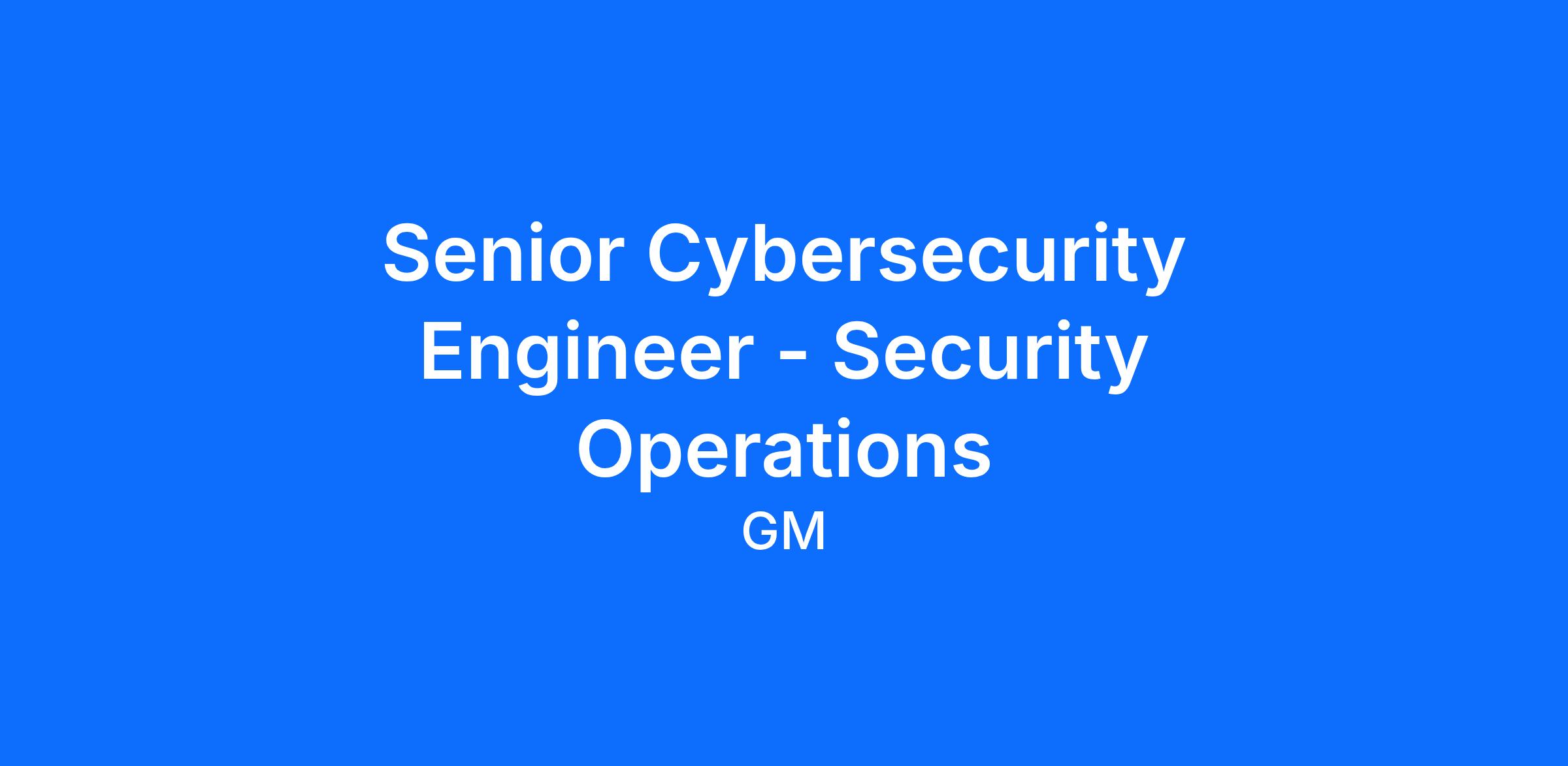 GM’s Cybersecurity Team safeguards the company’s global information assets, networks, and infrastructure. Our mission is to proactively defend GM against evolving cyber threats through strategic leadership, technical excellence, and innovative risk management. We seek cybersecurity professionals with advanced expertise, capable of driving enterprise security initiatives and influencing organizational resilience.