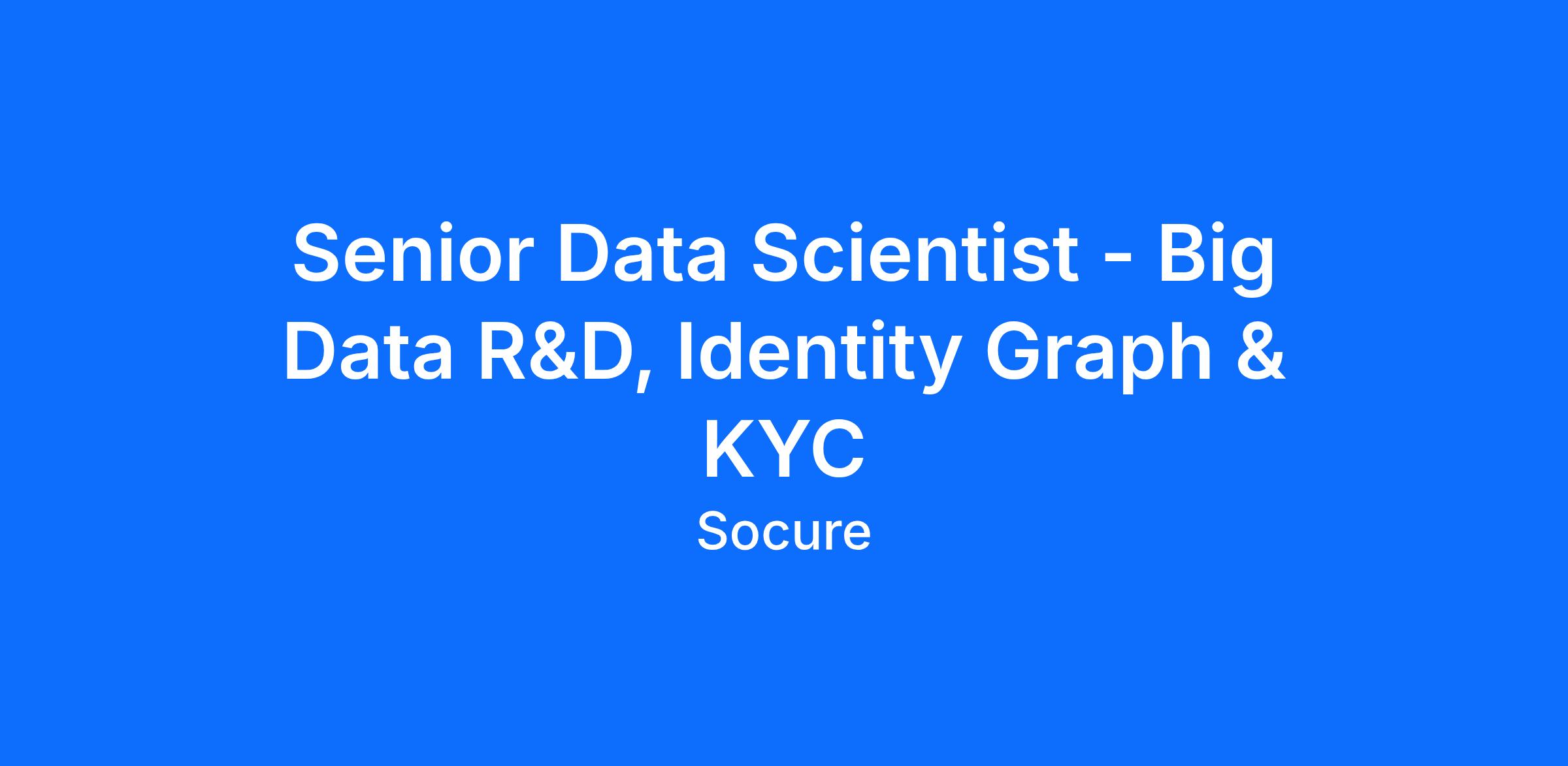 The Big Data R&D team develops cutting‑edge big data and graph‑based solutions for entity search, entity resolution, and identity matching that power Socure’s KYC and compliance products.