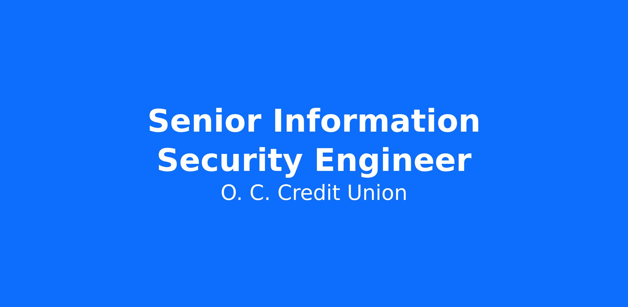 Are you a security leader ready to drive strategy, architect modern defenses, and elevate an enterprise‑wide security program? Join Orange County’s Federal Credit Union as our Senior Information Security Engineer—a key, high‑impact role responsible for strengthening the confidentiality, integrity, and availability of our critical systems across on‑prem and cloud environments.