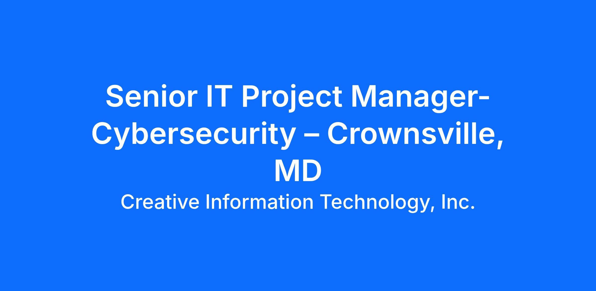 Senior IT Project Manager- Cybersecurity – Crownsville, MD |