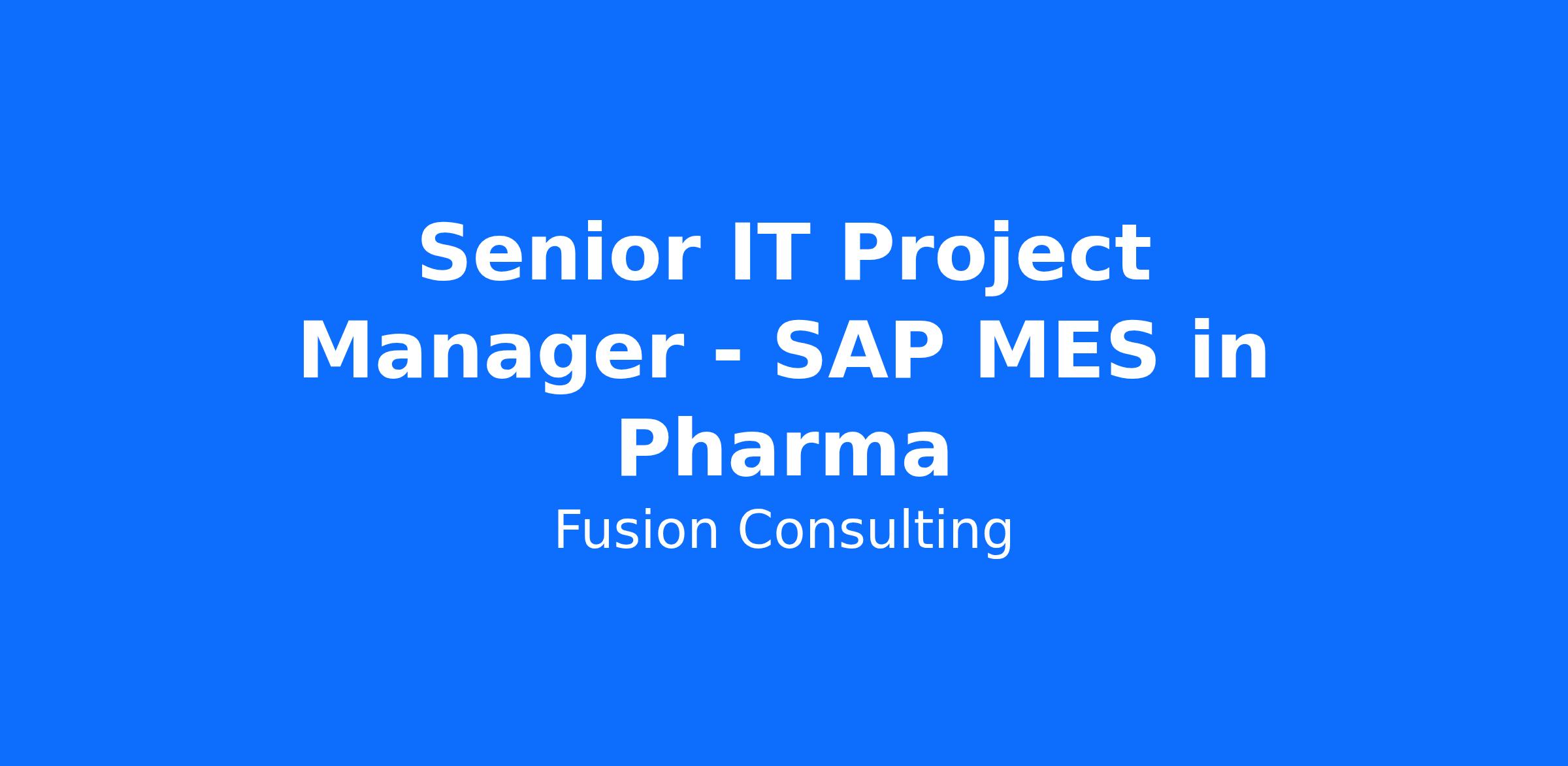 Senior IT Project Manager - SAP MES in Pharma