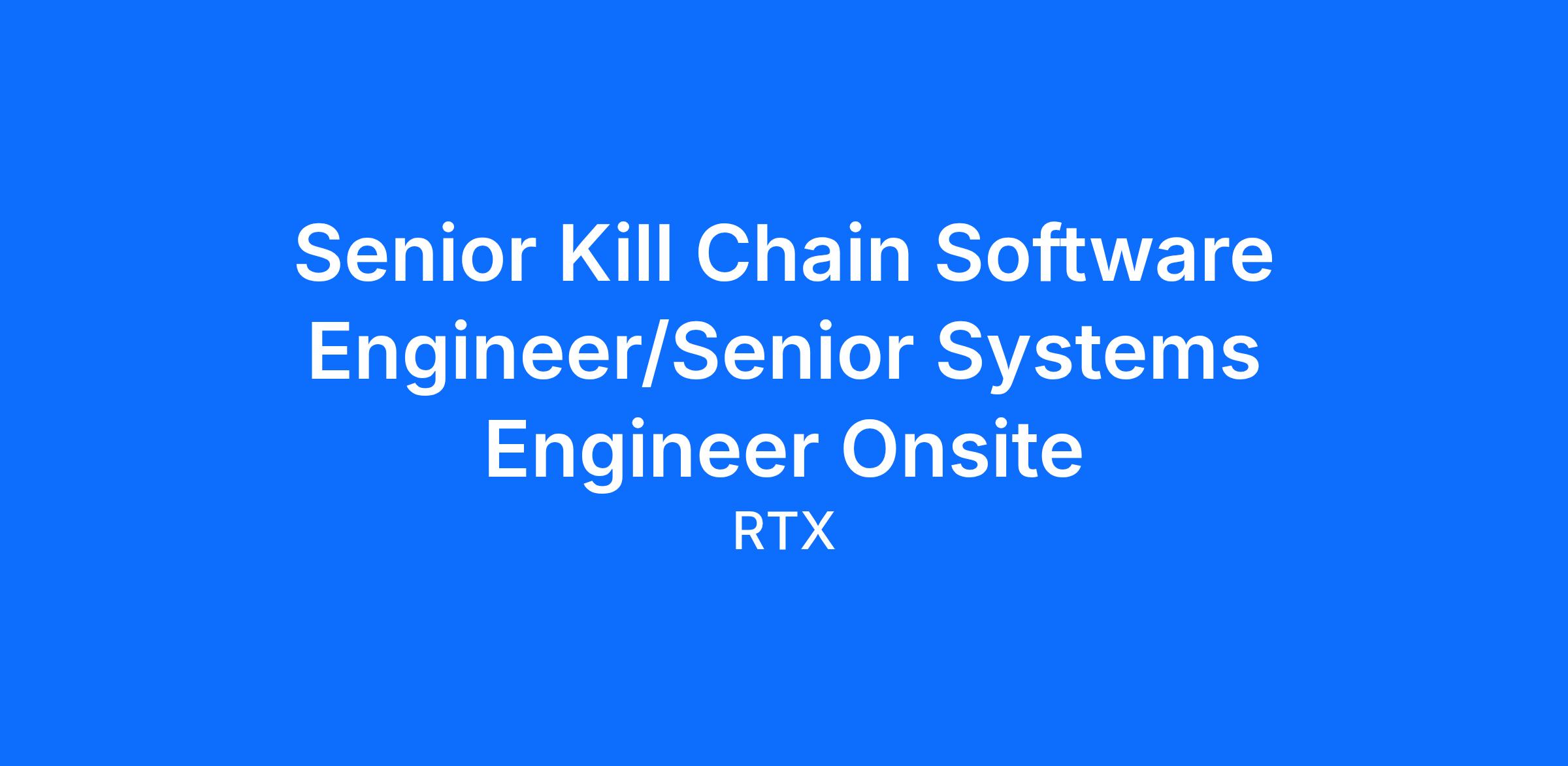 Raytheon is currently seeking a Senior Kill Chain Software Engineer. This is an onsite role in Tucson, AZ, with the potential for occasional travel a few times a year.