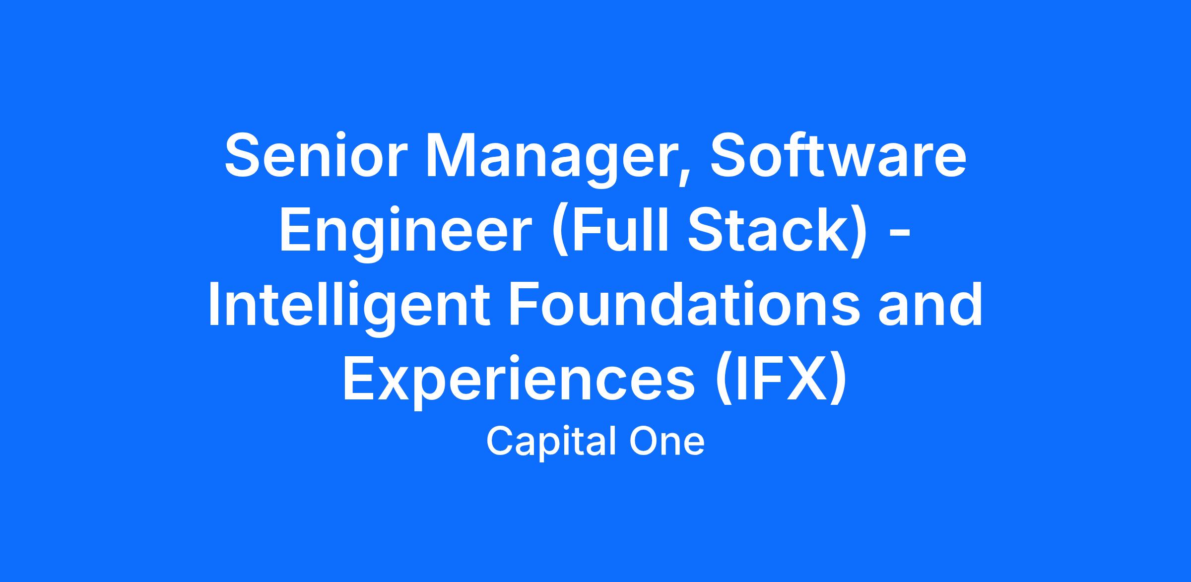 Do you love building and pioneering in the technology space? Do you enjoy solving complex business problems in a fast-paced, collaborative, inclusive, and iterative delivery environment? At Capital One, you'll be part of a big group of makers, breakers, doers and disruptors, who solve real problems and meet real customer needs. We are seeking Full Stack Software Engineers who are passionate about marrying data with emerging technologies. As a Capital One Sr. Manager Software Engineer, you’ll have the opportunity to be on the forefront of driving a major transformation within Capital One.