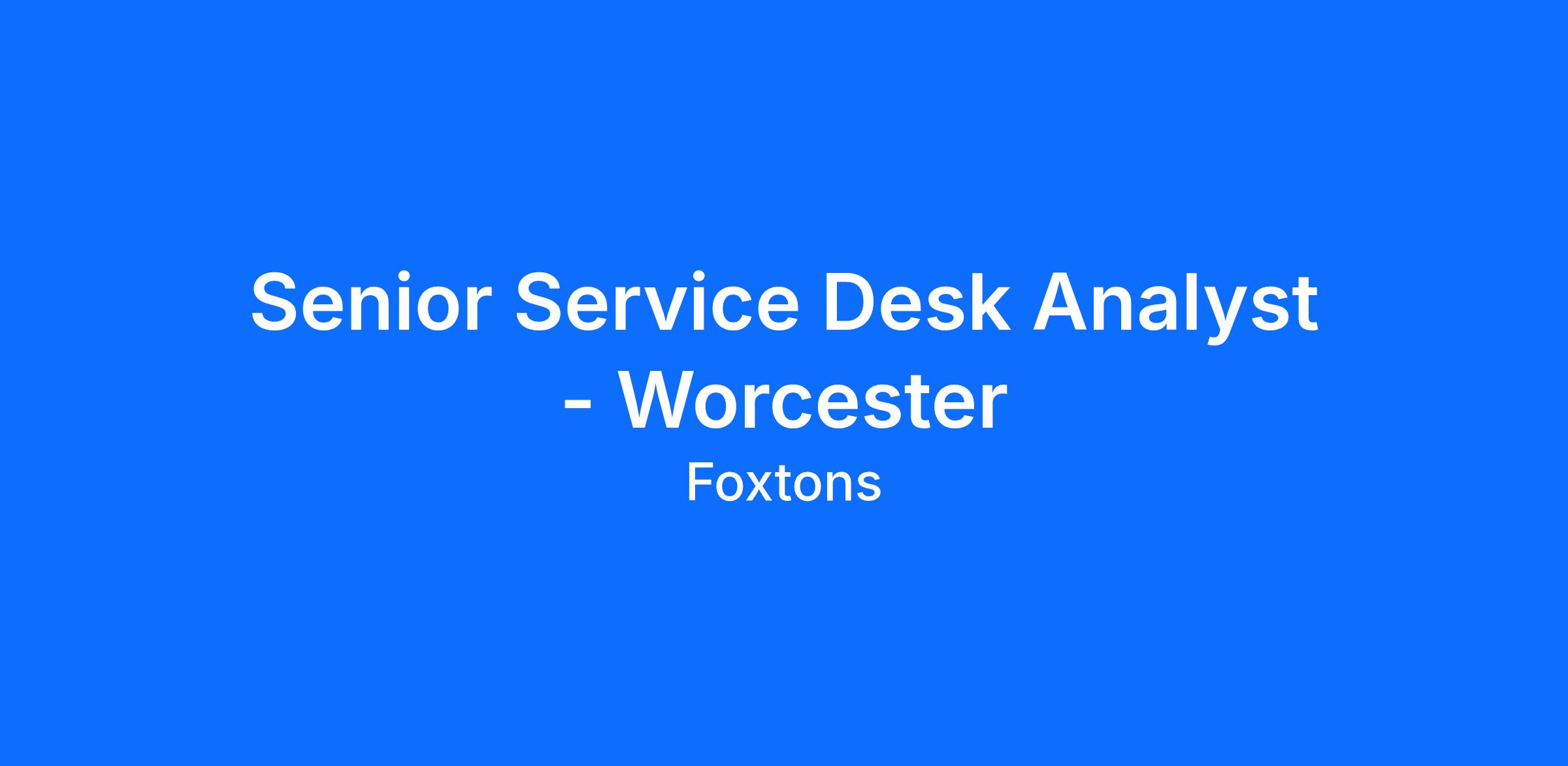 Senior Service Desk Analyst - Worcester