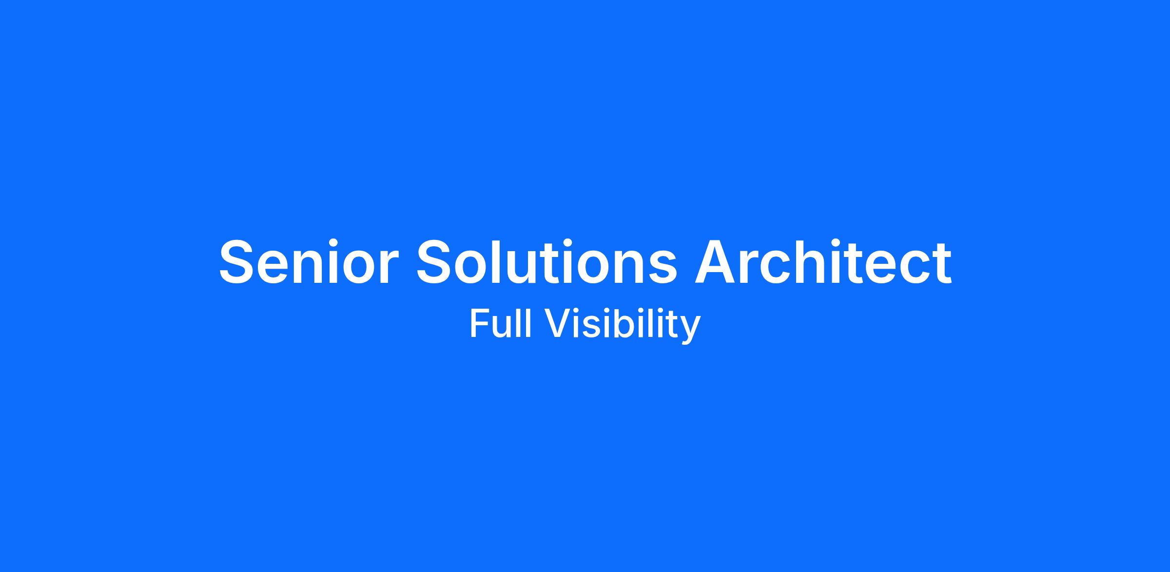 Full Visibility is seeking a Senior Solutions Architect to work in Huntsville, AL. Candidate must possess an active Top Secret/SCI eligible clearance.