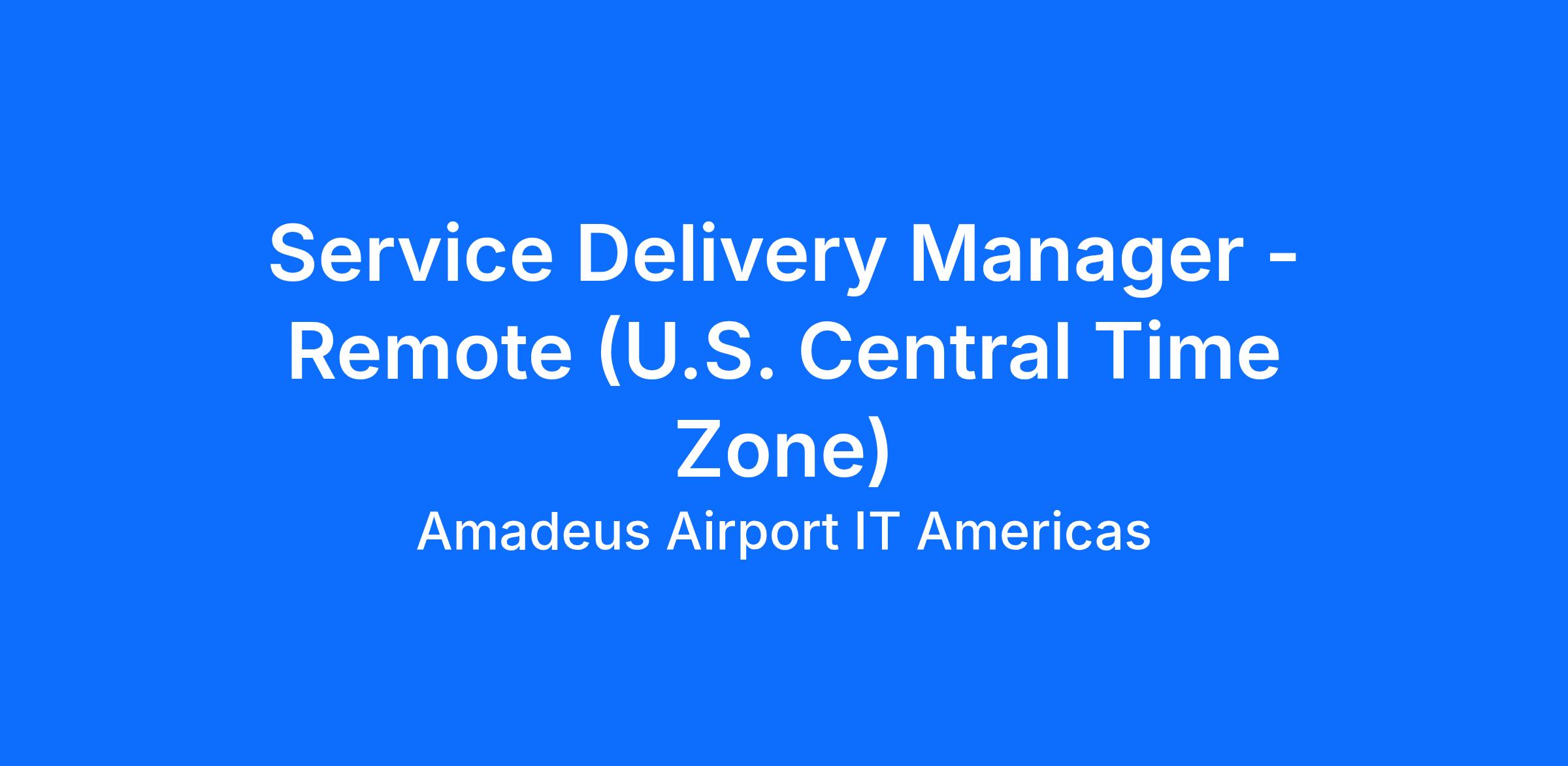 Location: - This role can be located in the Central time zone region. If located near an Amadeus office the role will be hybrid, if the role is located in a location that is not near Amadeus office the role can be remote.