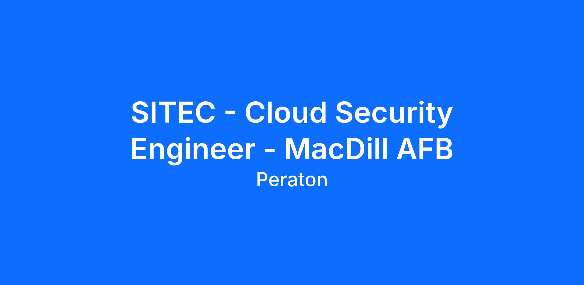 Peraton requires Cloud Systems Security Engineers to support the Special Operation Command Information Technology Enterprise Contract (SITEC) – 3 EOM. This position is located at MacDill AFB in Florida.
