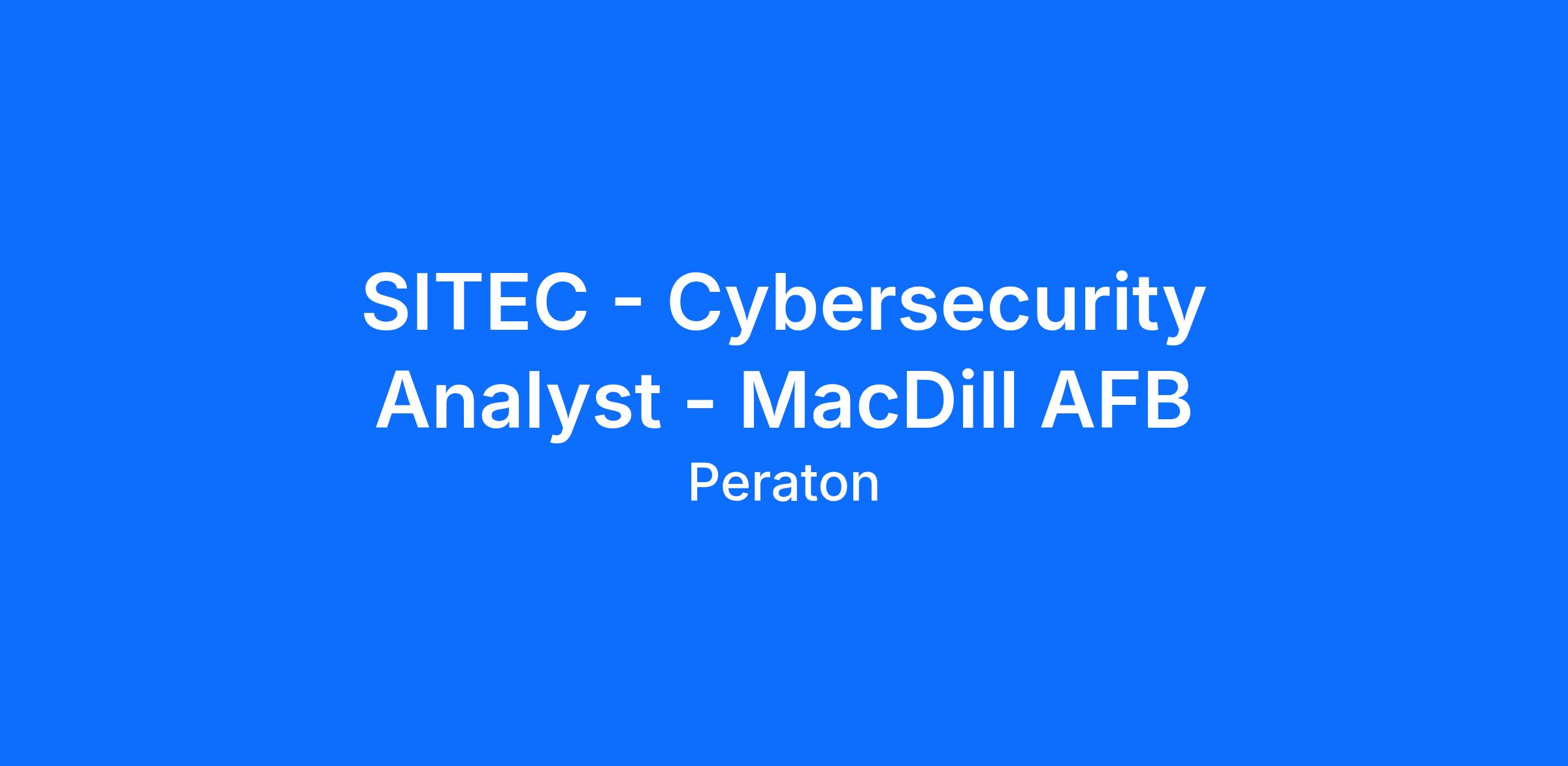 Peraton requires Cybersecurity Analysts to support the Special Operation Command Information Technology Enterprise Contract (SITEC) – 3 EOM. This position is located at MacDill AFB in Florida.