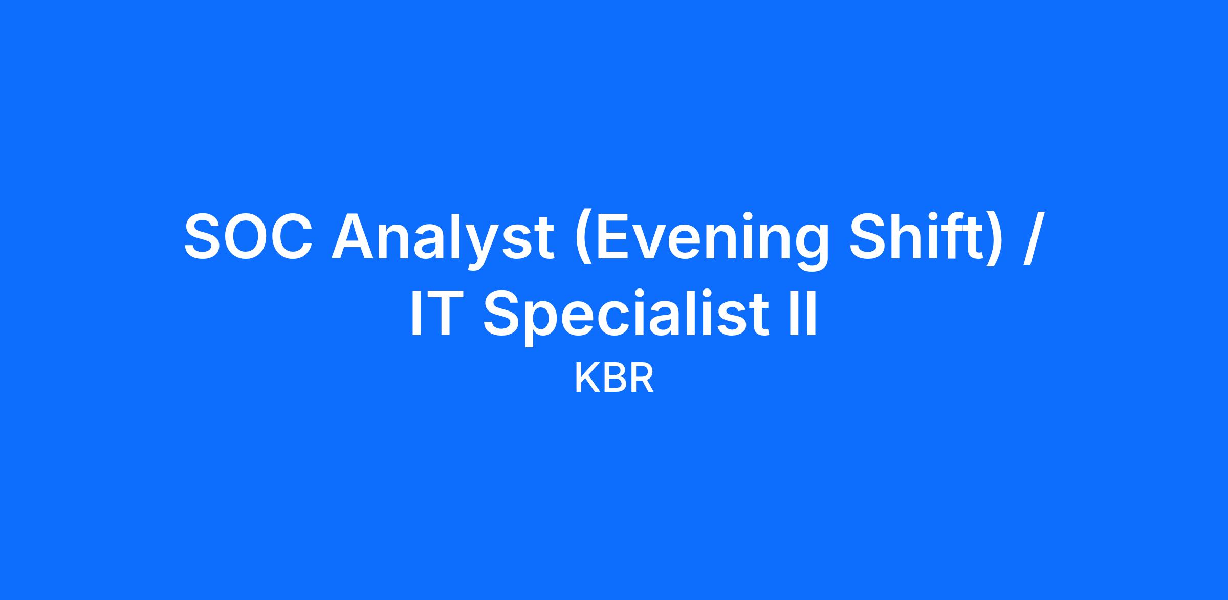 SOC Analyst (Evening Shift) / IT Specialist IIKBR has an immediate need for an energetic and dynamic Security Operations Center (SOC) Analyst (evening shift), known as an Active Response Center (ARC) Analyst at EROS, in support of the United States Geological Survey (USGS) Earth Resources Observation & Science (EROS) Center (http://eros.usgs.gov/) near Sioux Falls, SD (http://www.siouxfalls.org).