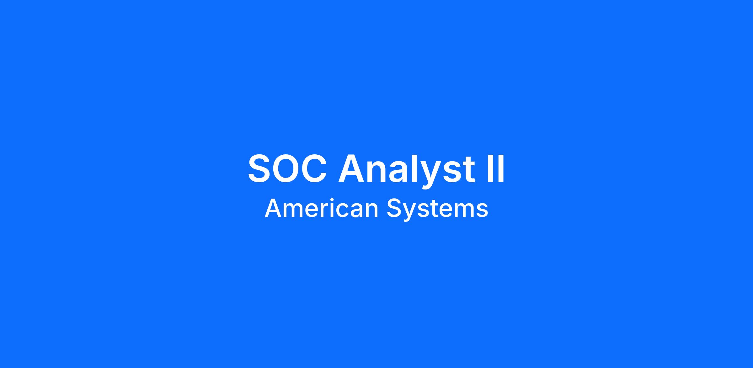 As the SOC Analyst II, you will provide tier II cybersecurity support in a Security Operations Center “SOC” environment. Daily responsibilities of the SOC are ever changing, however, you can expect to regularly conduct vulnerability assessments, analyze cyber threats, monitor the email gateway and create reports on all confirmed or suspicious activities. You will work closely with the Tier I and other Tier II personnel to effectively and efficiently provide optimum service to our customers as well as assist with training SOC Analyst I team members when needed. Additionally, in this position you will: