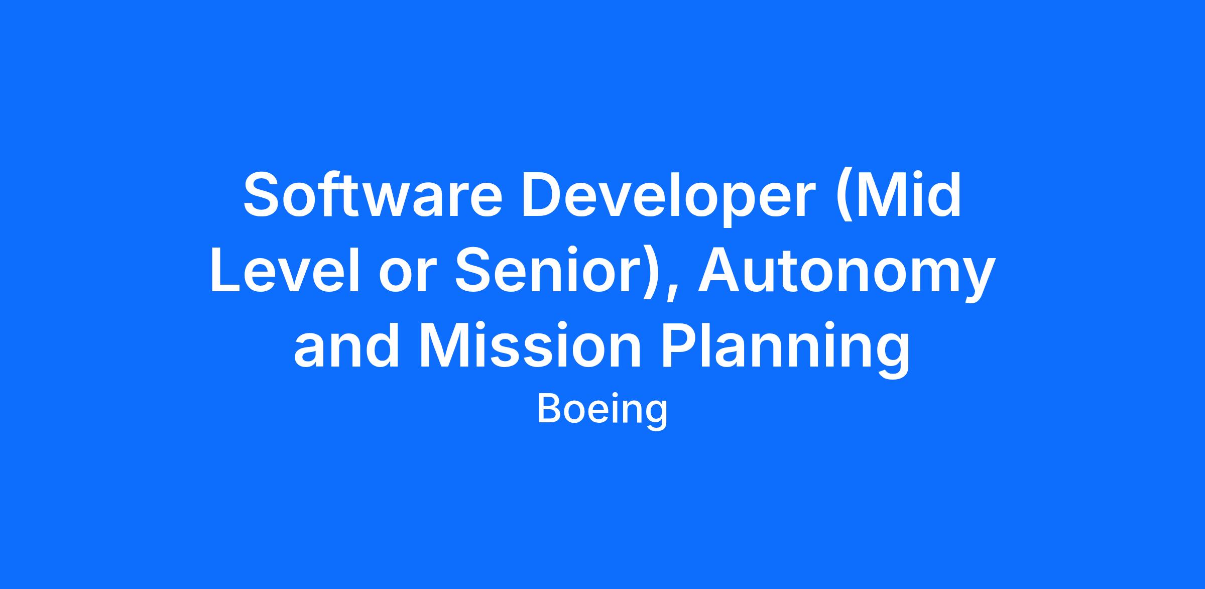 The Boeing CompanyThe Boeing Company is currently seeking Software Engineer- Developer (Mid Level or Senior) to support our Phantom Works Advanced Mission Planning team located in Berkeley, MO. This position will focus on supporting the Boeing Defense, Space & Security (BDS) Software Engineering organization.