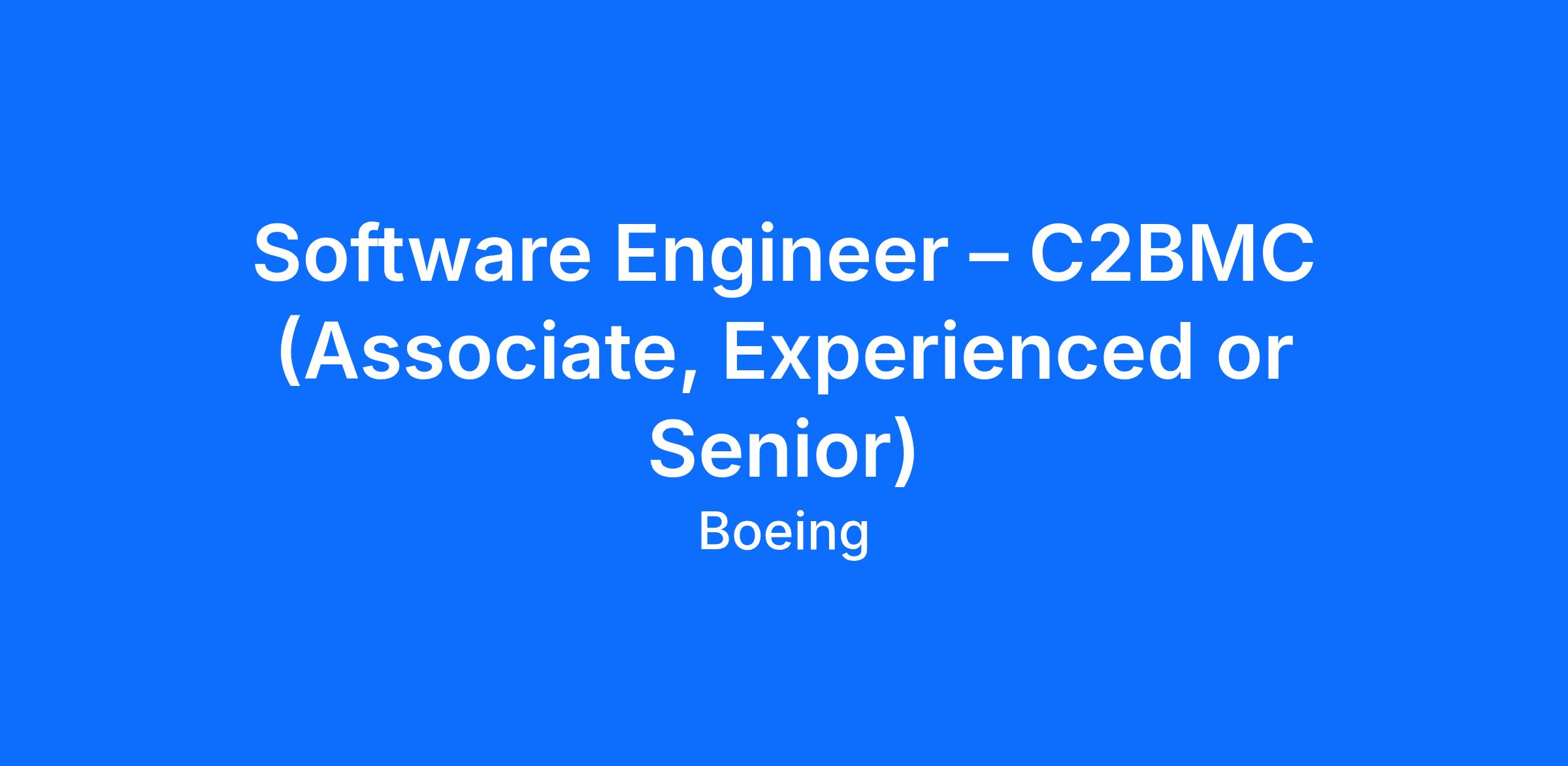 The Boeing CompanyThe Boeing Company is looking for a Software Engineer – C2BMC (Associate, Experienced or Senior) to join our Missile Defense Team in Colorado Springs, CO or Huntsville, AL.