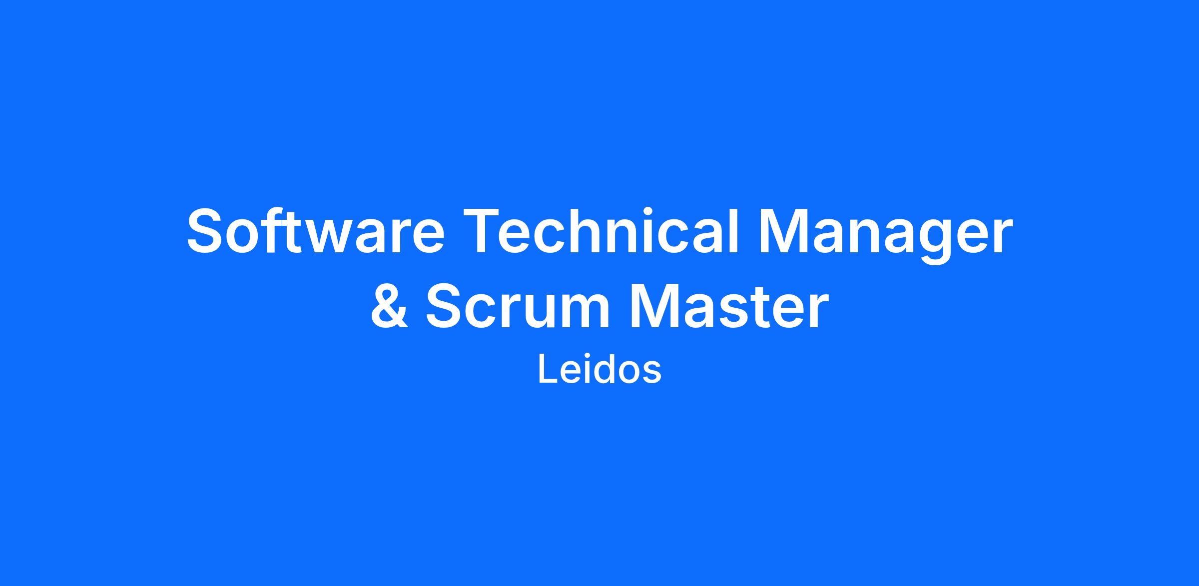 Leidos is seeking a Software Technical Manager & Scrum Master who will lead dynamic team working on the development of software that improves aircraft runway and terminal congestion.