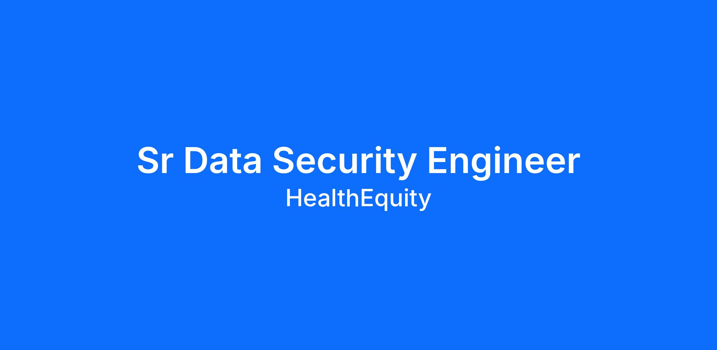 At HealthEquity, protecting sensitive healthcare and financial data is mission‑critical. As a Senior Data Security Engineer, you’ll play a direct role in shaping how our most sensitive structured data is protected as our platform evolves to include AI agents, automation, and modern data pipelines.