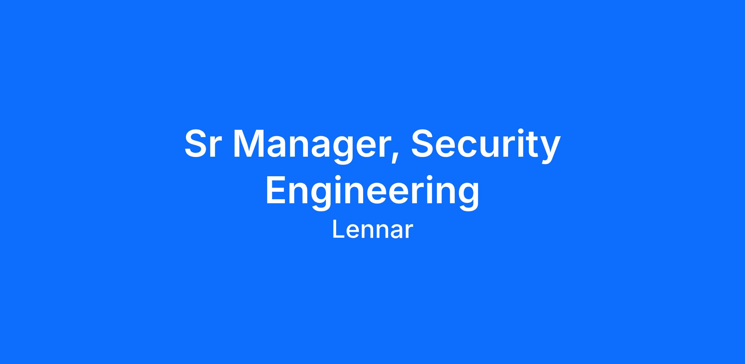 The Sr Manager, Security Engineering, under the general direction of Infrastructure & Security leadership, will lead the design, development, and delivery of security engineering capabilities across Lennar's hybrid, multi-cloud environment. This leader will build and inspire a high-performing security engineering team, championing a culture of engineering excellence, continuous improvement, and innovation. A core focus of this role is leveraging AI-powered tools and automation to accelerate security delivery, reduce risk, and modernize how security is built and operated across the enterprise.