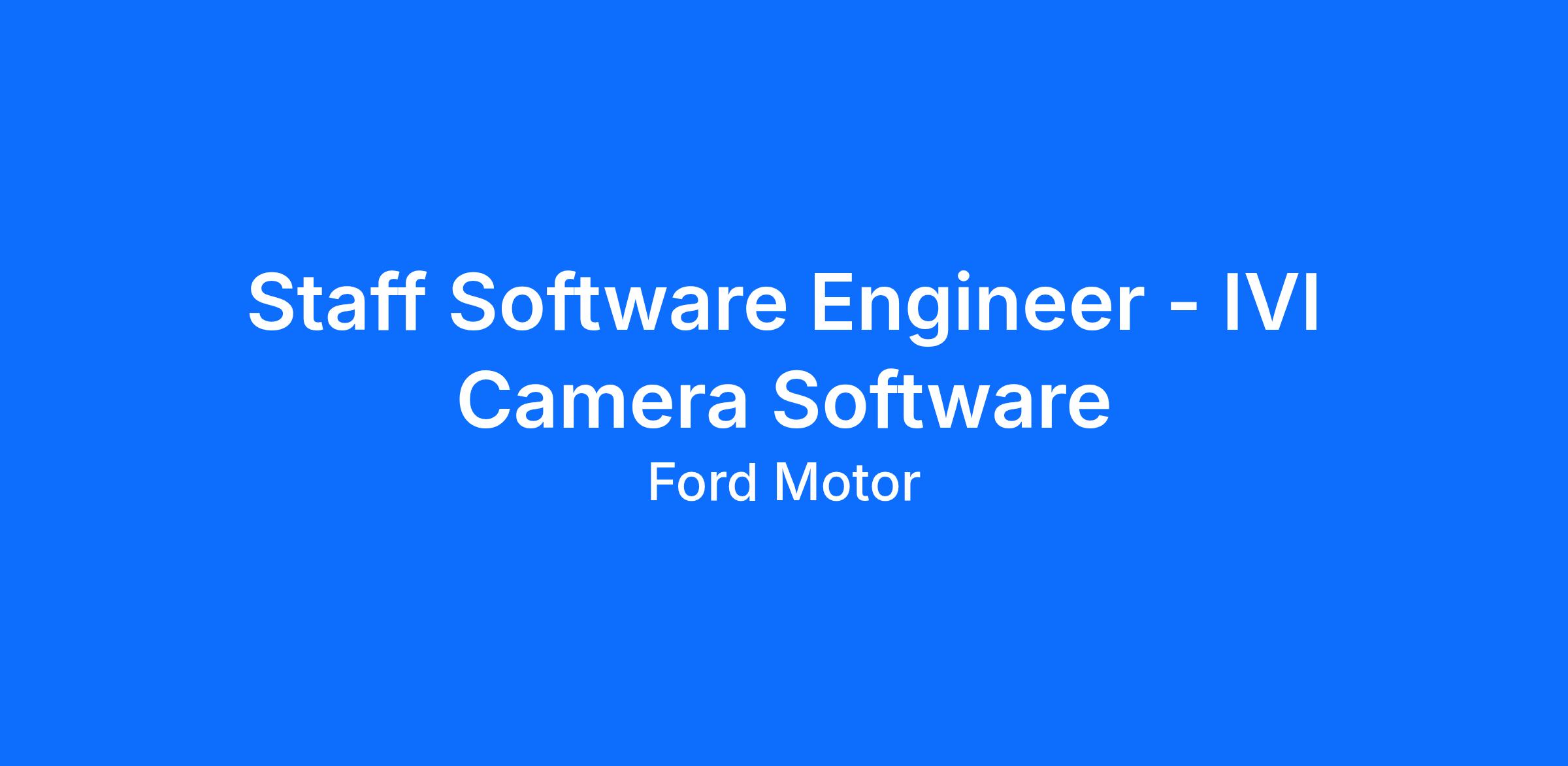 Ford's IVI (In-Vehicle Infotainment) organization is seeking a Staff Software Engineer with deep technical expertise in embedded Camera software. In this role, you will be instrumental in designing, developing and deploying mission-critical camera software. Your work will focus on streaming camera feeds from embedded cameras and ADAS ECUs to the displays on our next-generation automotive platforms.