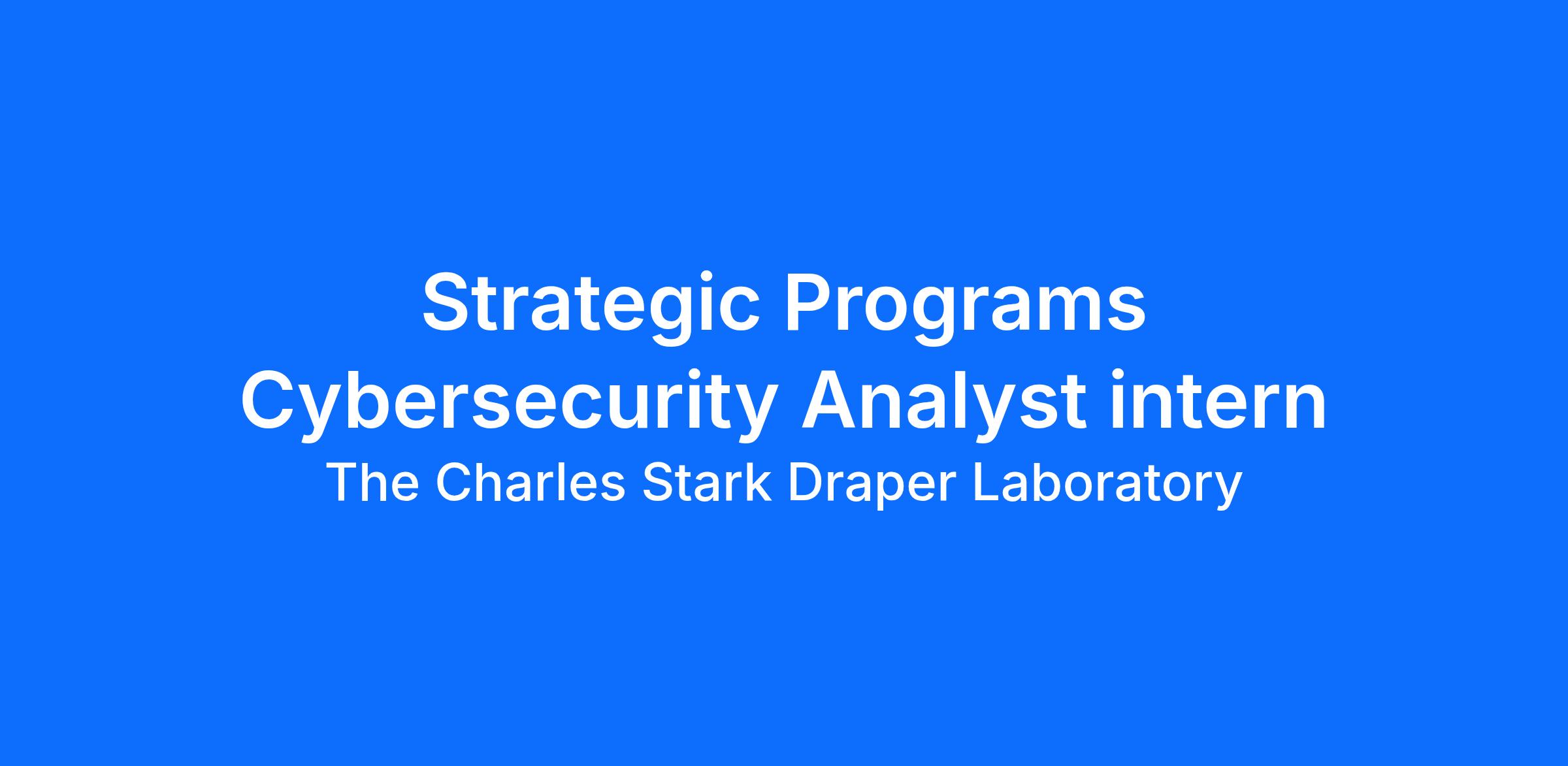 The Strategic Programs Cybersecurity Analyst internship role is responsible for supporting the planning, designing, testing, implementing, and maintaining the cyber security solutions for the information systems and networks supporting a critical national defense program at Draper. This role requires an understanding of the requirements for processing Controlled Unclassified Information and, in some cases, classified information, mission priorities and goals, as well as an understanding of current and emerging technologies to support strategic planning and technical expertise relative to all aspects of the cyber security program. The optimal candidate for this role has the ability to collaborate with multifaceted and dynamic teams.Job Description: