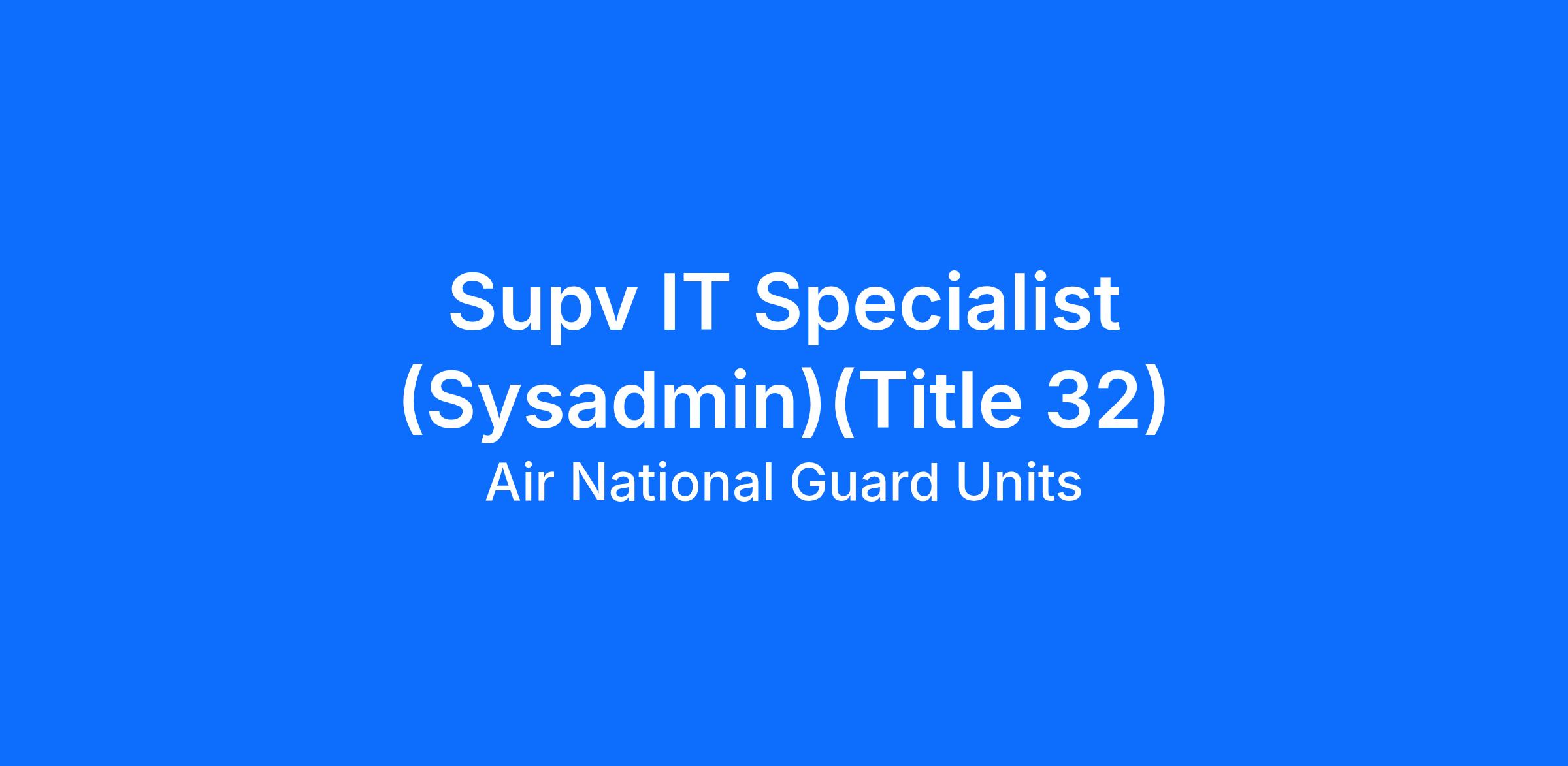 This National Guard position is for a SUPV IT SPECIALIST (SYSADMIN)(TITLE 32), Position Description Number D2158P01 and is part of the FL HQ 101 AOG, National Guard.
