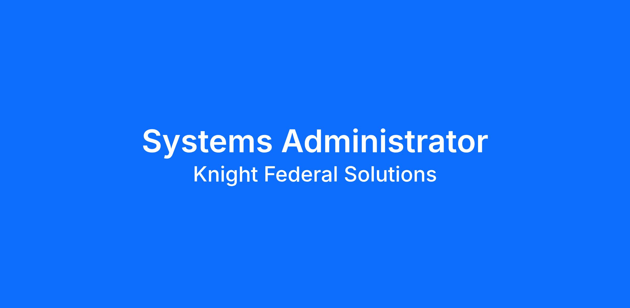 - The Systems Administrator at Knight Federal Solutions Inc. will be responsible for maintaining, upgrading, and managing our software, hardware, and networks. The role is crucial in ensuring the smooth operation of IT systems and services, providing technical support, and ensuring the security and efficiency of IT infrastructure.