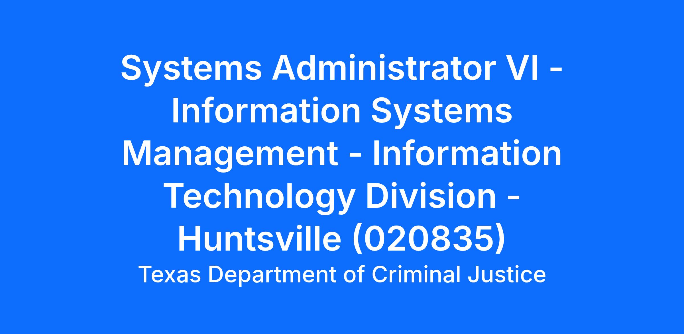 Systems Administrator VI - Information Systems Management - Information Technology Division - Huntsville (020835)