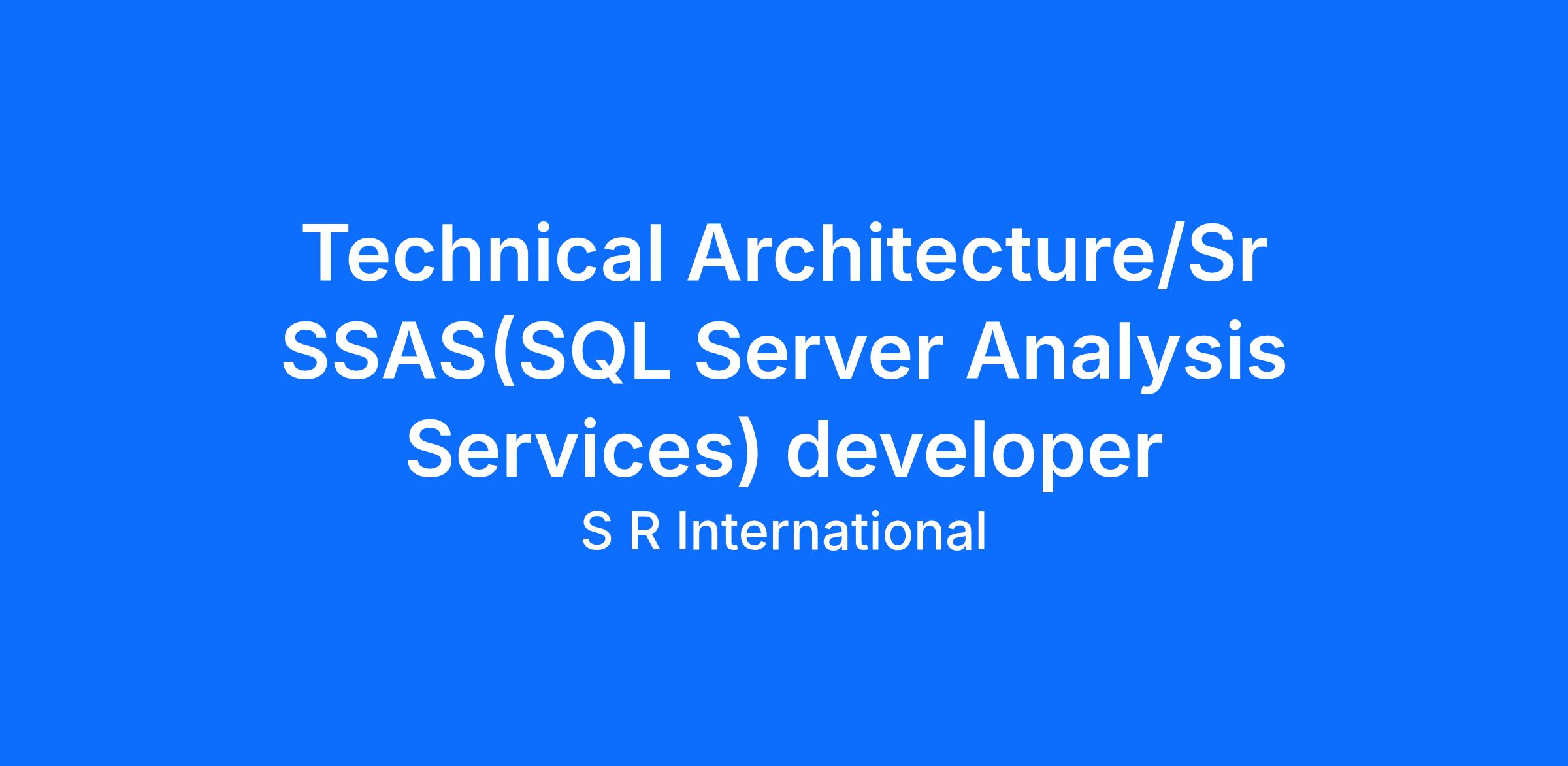 Job Title: Technical Architecture - Sr SSAS (SQL Server Analysis Services) developer
