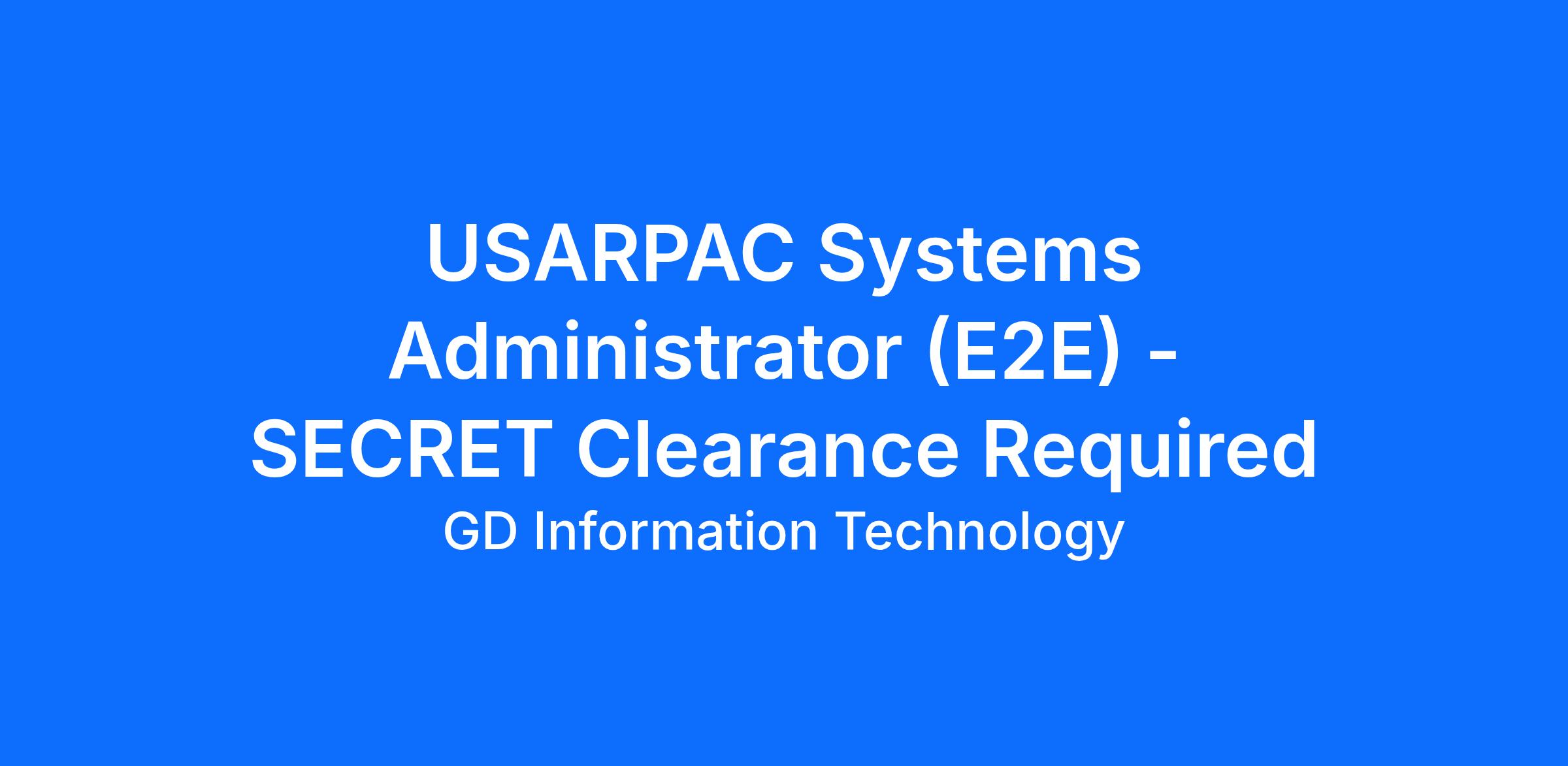 At GDIT, people are our differentiator. As an E2E Systems Administrator you will help ensure today is safe and tomorrow is smarter. Our work depends on a Systems Administrator joining our team to help build and enable the readiness of our Nation's Army in the Pacific!