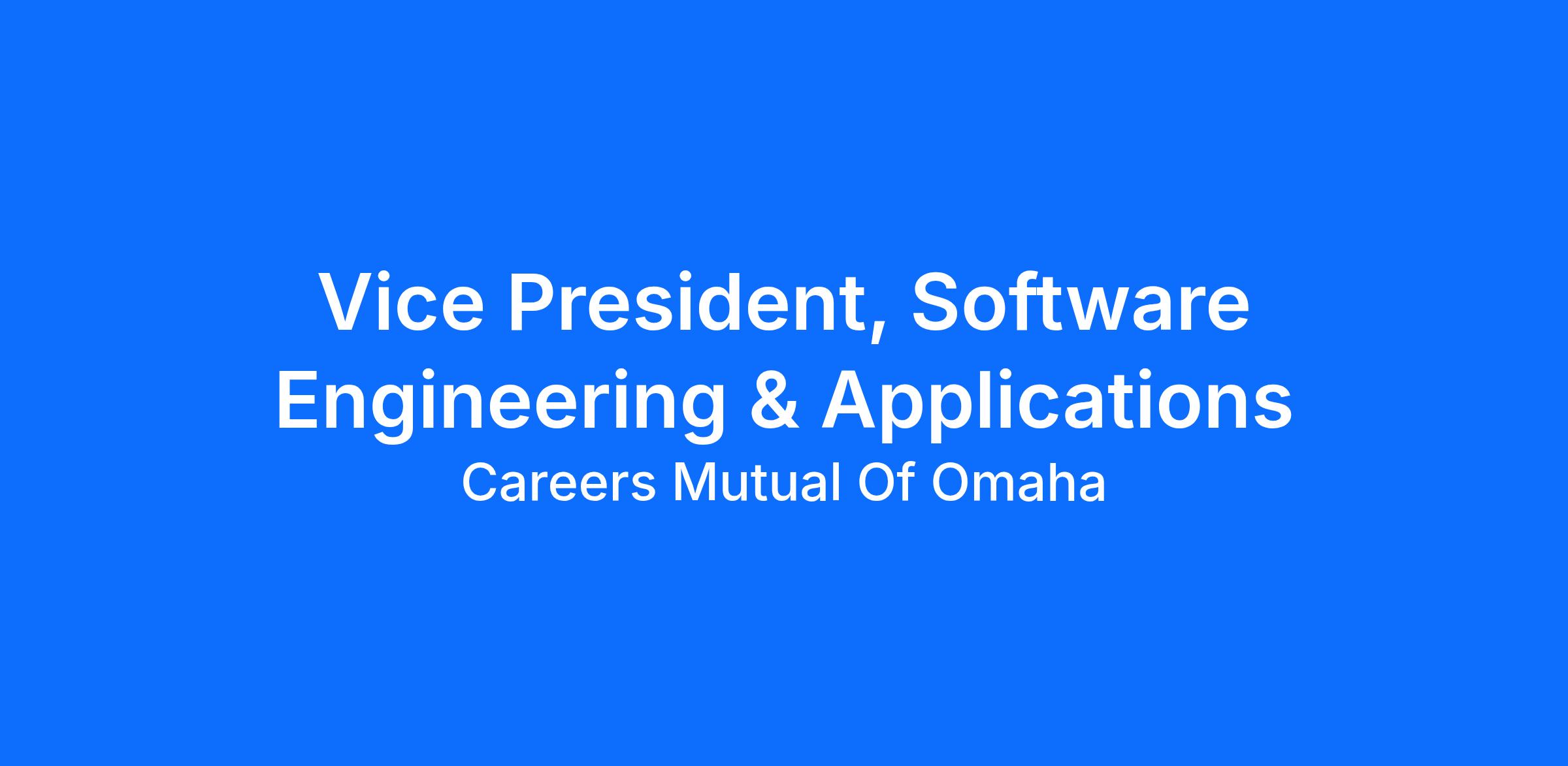 The Vice President, Software Engineering and Applications serves as the senior IT leader for their division, responsible for setting the software engineering vision, developing delivery strategies, and driving business outcomes through innovative technology solutions. The role supports corporate objectives by effectively leveraging information services resources, applications, support models, and budget. By developing high-performing talent, improving processes, and fostering innovation and accountability, the VP advances Mutual of Omaha’s strategic and long-term goals.